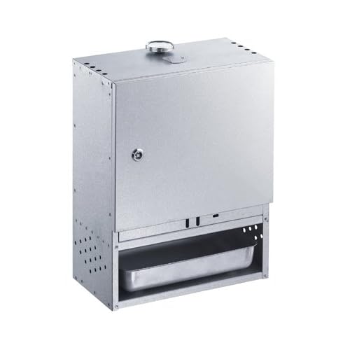 Räucherofen von Peetz geeignet zum Heißräuchernaluminiert mit Tür (für ca. 6 Fische liegend)Ausführung: aluminiertes Feinblech dieser Artikel ist TÜV-NORD geprüft Maße in cm (Höhe x Breite x Tiefe): 50 x 39 x 21 cm Ca. 8,8 kg inkl. GrundausstattungGrundausstattung: Glutkasten Tropfwanne Räuchermehlschale Thermometer 2x Fischkorb Beutel Räuchermehl (500g)