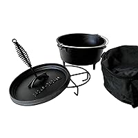 ToCis Big BBQ Classic Dutch Oven 45 Gusseisen eingebrannt 10er Kochtopf mit Deckelheber Deckelständer ohne Füße
