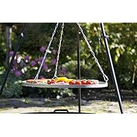 Schwenkgrill Dreibein Edelstahl 70cm inkl. Feuerschale 'Pan 39' 80cm Hauptteil des Schwenkgrills auf dem Dreibein ist der runde Rost, der aus Edelstahl gefertigt wurde (erhältlich in drei Durchmessern). Je größer der Rost wird, desto mehr Platz hat man für Leckerbissen. Auf diesem kannst Du Wurst, Fleisch oder auch Gemüse grillen. Das Dreibein steht sicher und stürzt nicht um. Die spitzen Enden an den Beinen garantieren das auch auf unebenen Oberflächen. Die Kette hilft Dir die nötige Höhe zu regulieren. Auf der Terrasse am Haus oder während des Ausflugs ins Grüne - Du kannst den Grill überall benutzen. Auf der praktischen Feuerschale kannst Du das Feuer, wo Du willst, anzünden und das stabile Dreibein ohne Probleme auch auf die unebene Oberfläche stellen. Zu dem Set gehören: * der Rost (Durchmesser: 70cm) * die Kette * das Dreibein * die Feuerschale (Durchmesser: 80 cm) Wenn Sie mit Ihren Freunden und der Familie um einen Schwenkgrill herum sitzen, dann fühlen Sie sich vielleicht ein wenig wie am Lagerfeuer. Schließlich steht ein Lagerfeuer für Gemütlichkeit, Zusammenhalt und auch ein wenig für Romantik. Wenn abends alle um die Feuerstelle herum sitzen, dabei ein paar kühle Getränke genießen und dem Fleisch beim Garwerden zuschauen, dann ist gute Laune beinahe garantiert. Alle Produkte der Firma Farmcook zeichnen sich durch ein ansprechendes Design aus. Sie sind sicher und stabil konstruiert und durch Ihre Materialien hochwertig und langlebig. Dank der speziellen Konstruktion des Dreibeins können die Farmcook-Produkte an jedem beliebigen Ort und auf jedem Untergrund aufgestellt werden. Leichte Montage macht das Reinigen kinderleicht. Alle Farmcook-Produkte sind auf Ihre Lebensmitteltauglichkeit zertifiziert.