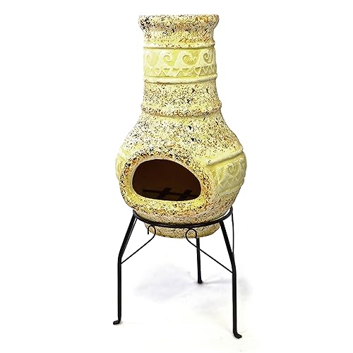 Nexos Terrassenofen Gartenkamin Terracotta 94 cm Gartenofen Stahlgestell Feueröffnung 15 x 10 cm Grillrost 20x15 cm Schlotöffnung 15 cm robust 18 kg